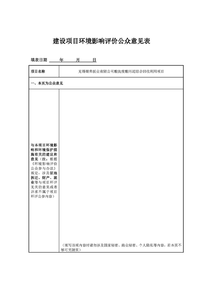 無錫銀榮板業(yè)有限公司酸洗廢酸污泥綜合回收利用項(xiàng)目